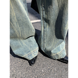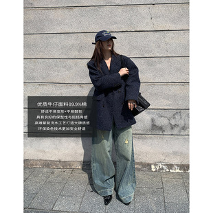 女2025新宽松加绒直筒拖地裤 阔腿牛仔裤 四面弹窄版 时髦侧开叉