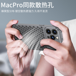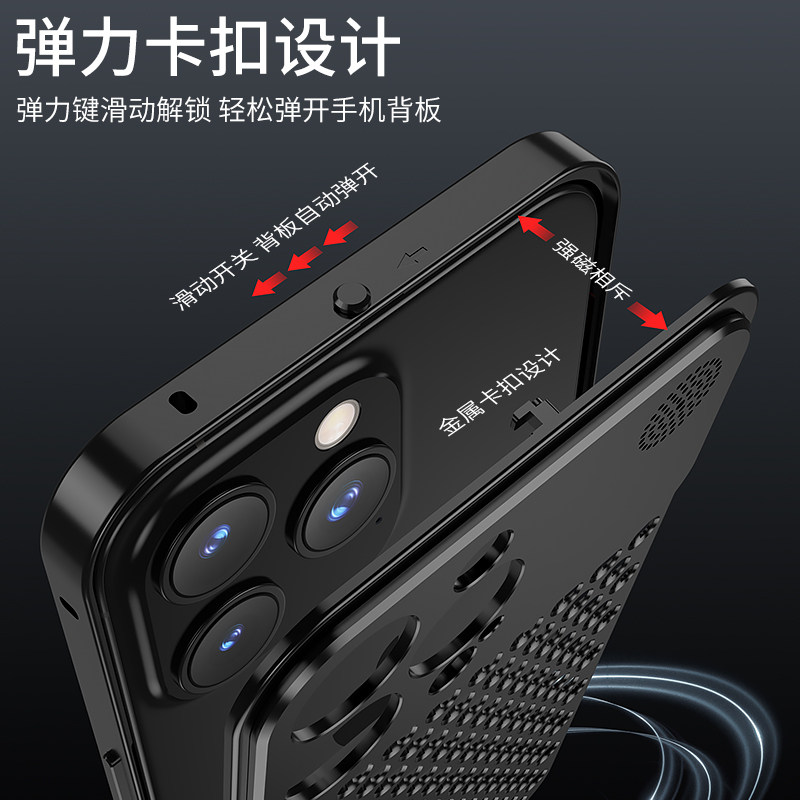 适用苹果16Promax手机壳香薰散热金属壳创意iPhone15Promax手机套个性 苹果14promax铝合金弹扣背板保护套防摔