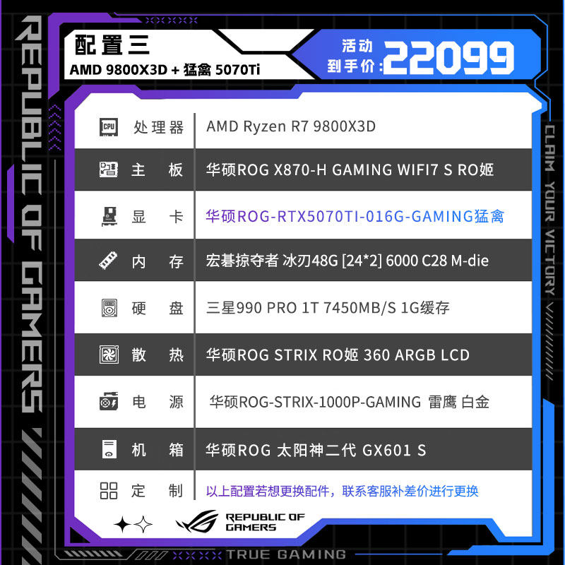 华硕ROG全家桶太阳神RTX5090D 电脑9800X3D游戏DIY主机 5080台式