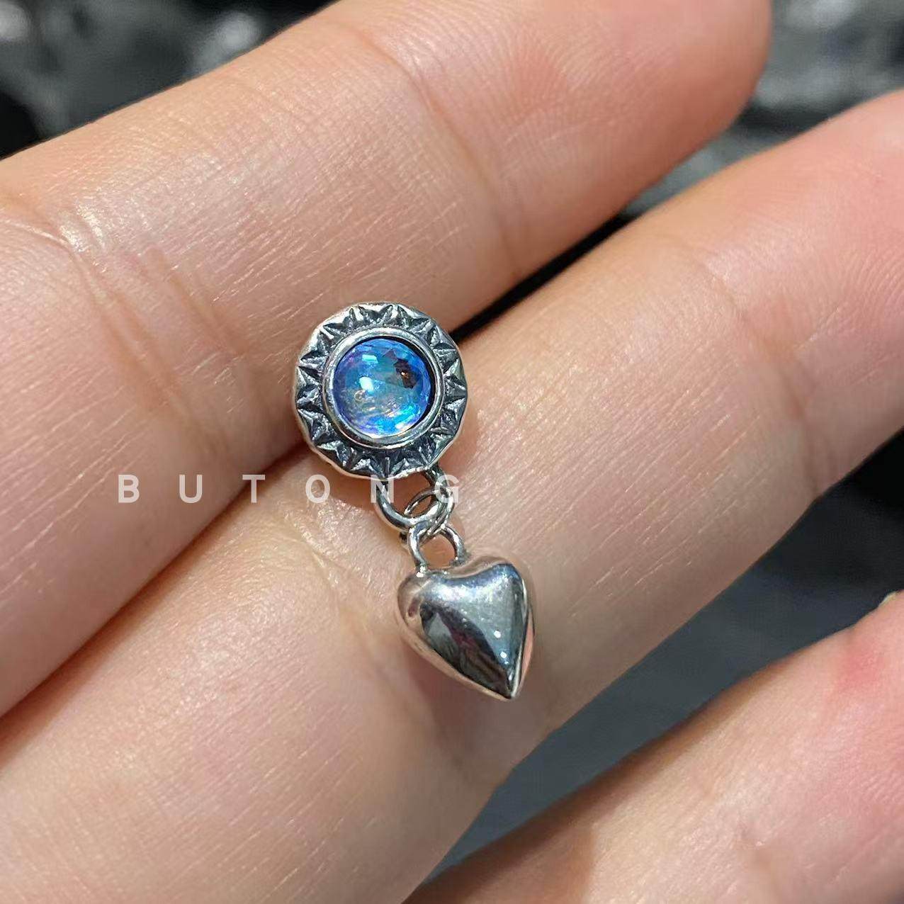 S999纯银玉石耳钉2025年新款 潮养耳洞小巧耳环女气质睡觉免摘耳饰
