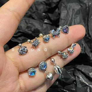 「HALU」6mm爆闪耳钉钛钢彩色百搭不易过敏耳蜗耳骨钉抗过敏耳环