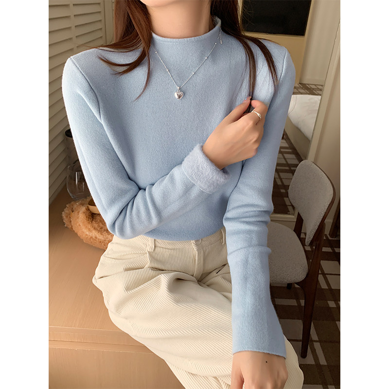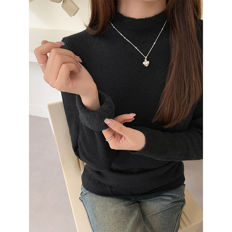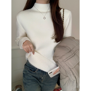 外出喂奶打底衫 哺乳上衣冬季 一体绒保暖半高领针织毛衣产后辣妈款