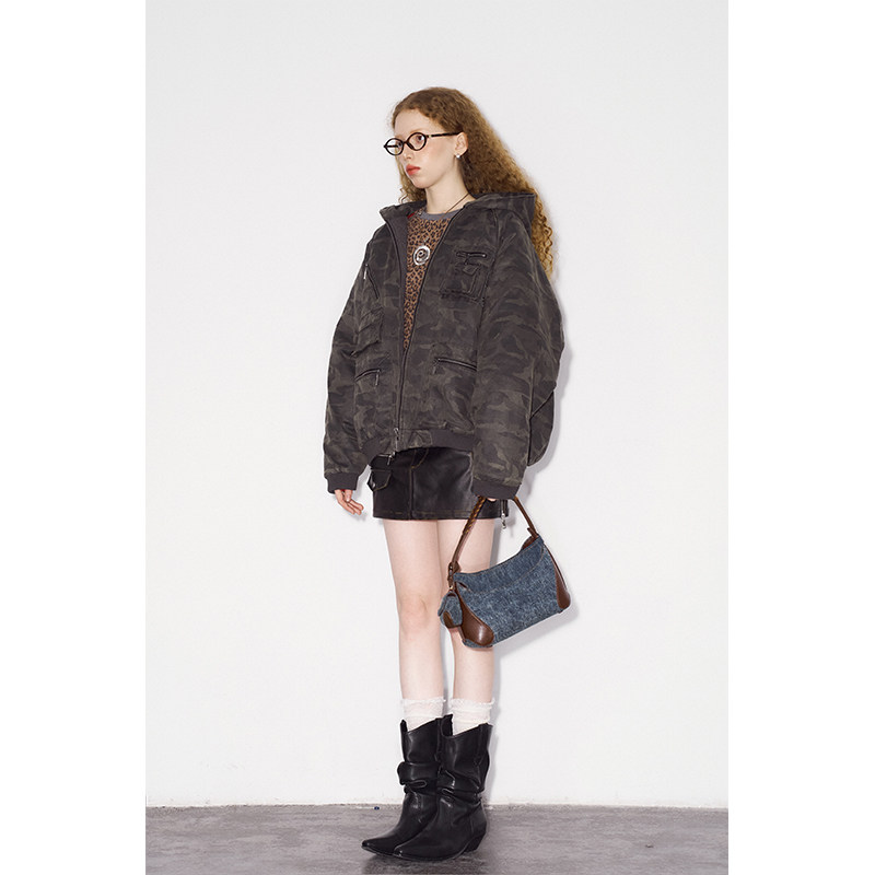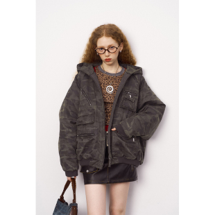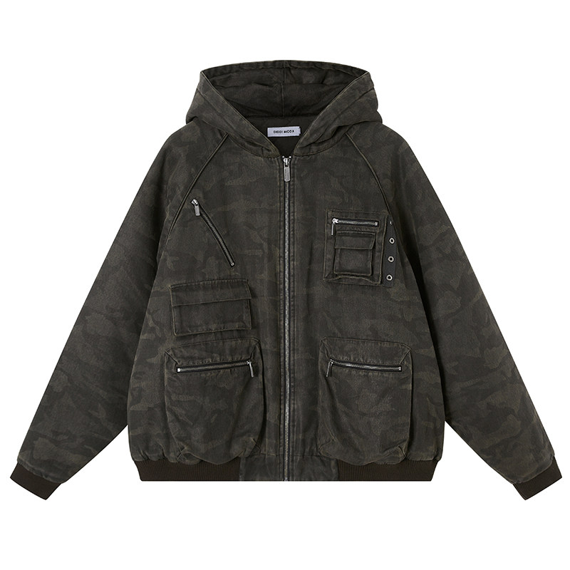 DIDDIMODA重工洗水迷彩口袋连帽外套复古挺阔棉上衣 清仓特惠