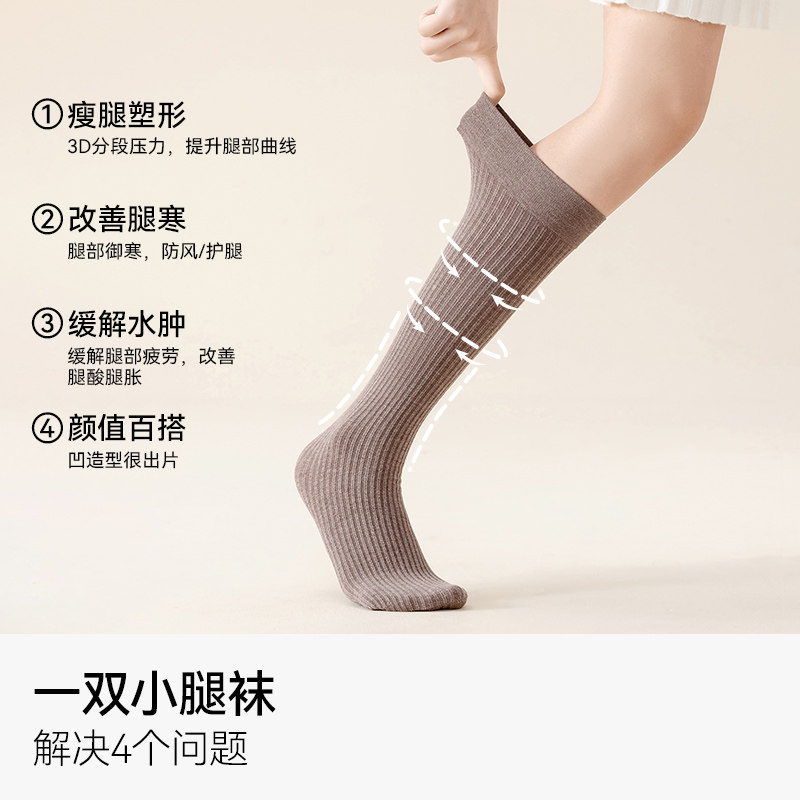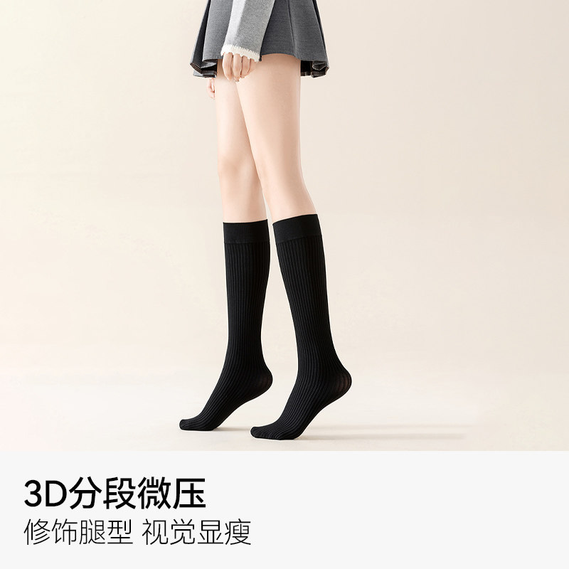 压力瘦腿袜子秋冬日系小腿袜新款 袜子女中筒袜黑色 防滑jk配小皮鞋