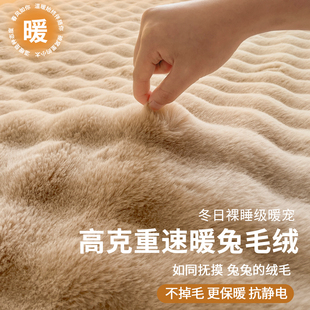 水星家纺牛奶绒床笠单件抗静电暖绒床垫保护罩加厚保暖床品