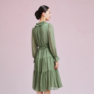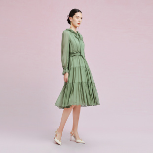 桑蚕丝 气质花边领层叠洋装 早新款 裙 Koradior拉珂蒂女春季