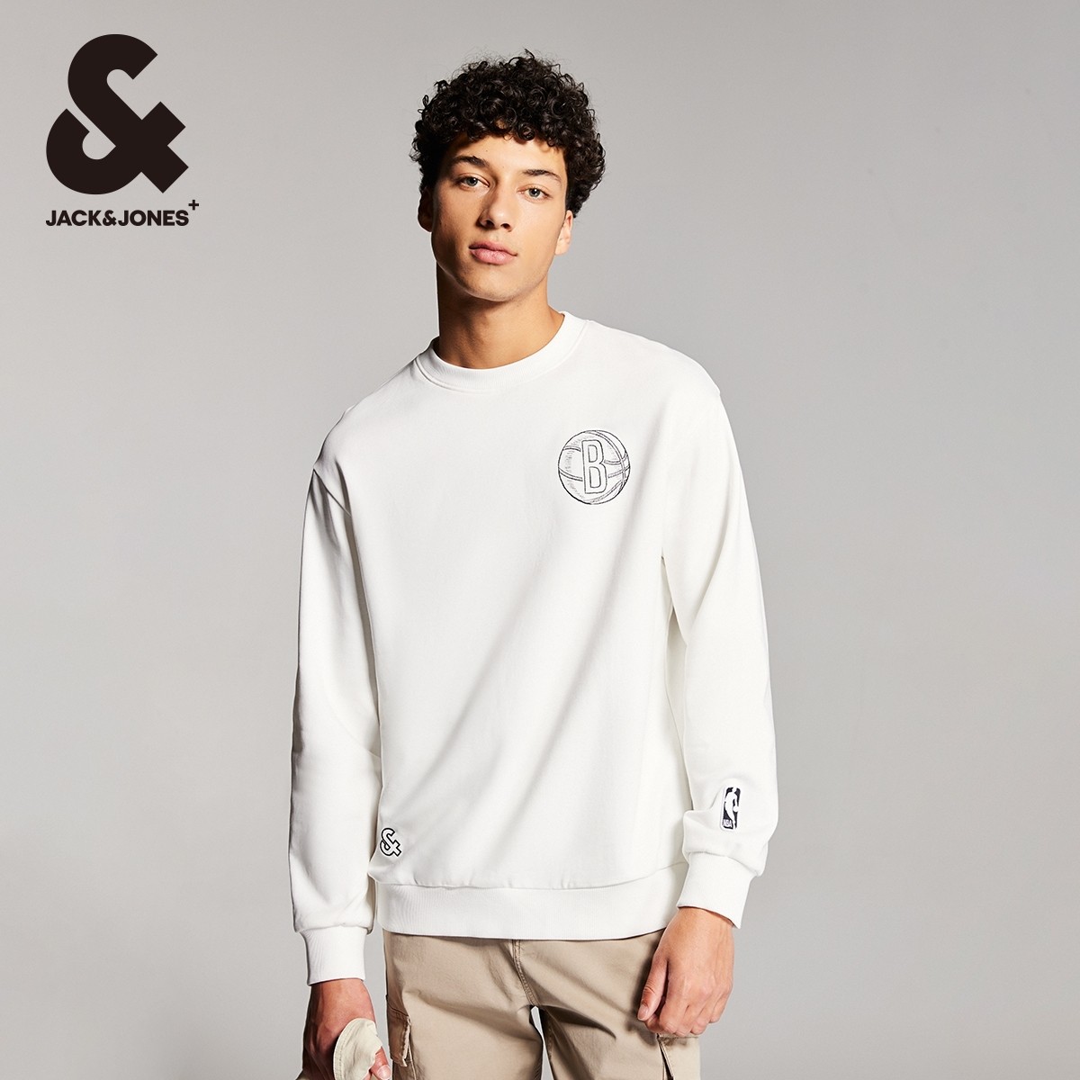 tq区绫致杰克琼斯秋冬NBA联名篮网队舒适圆领长袖 卫衣男