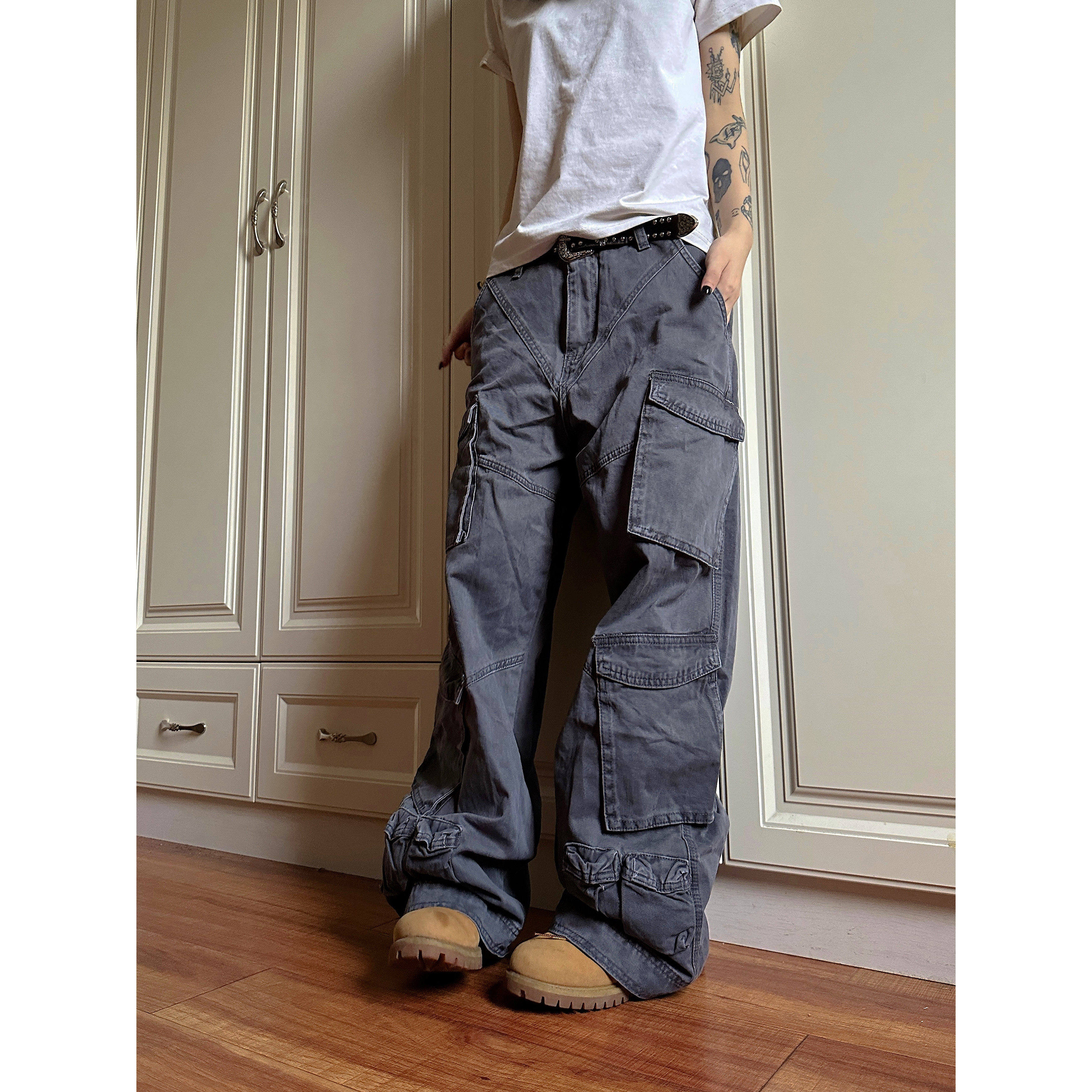 男小众设计感宽松痞帅炸街裤 F383 裤 复古解构多口袋工装 2024美式