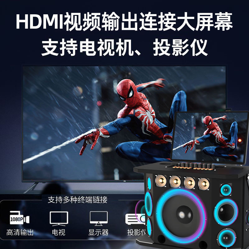 国爱音响带显示屏户外移动广场舞家庭KTV卡拉OK点歌一体机大功率