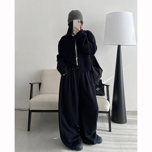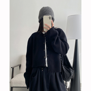 东京岁时记jk黑色单排扣毛衣开衫 女秋外套 撞色娃娃领小个子针织衫