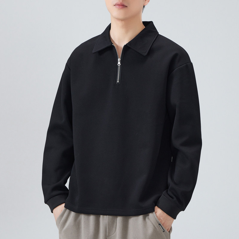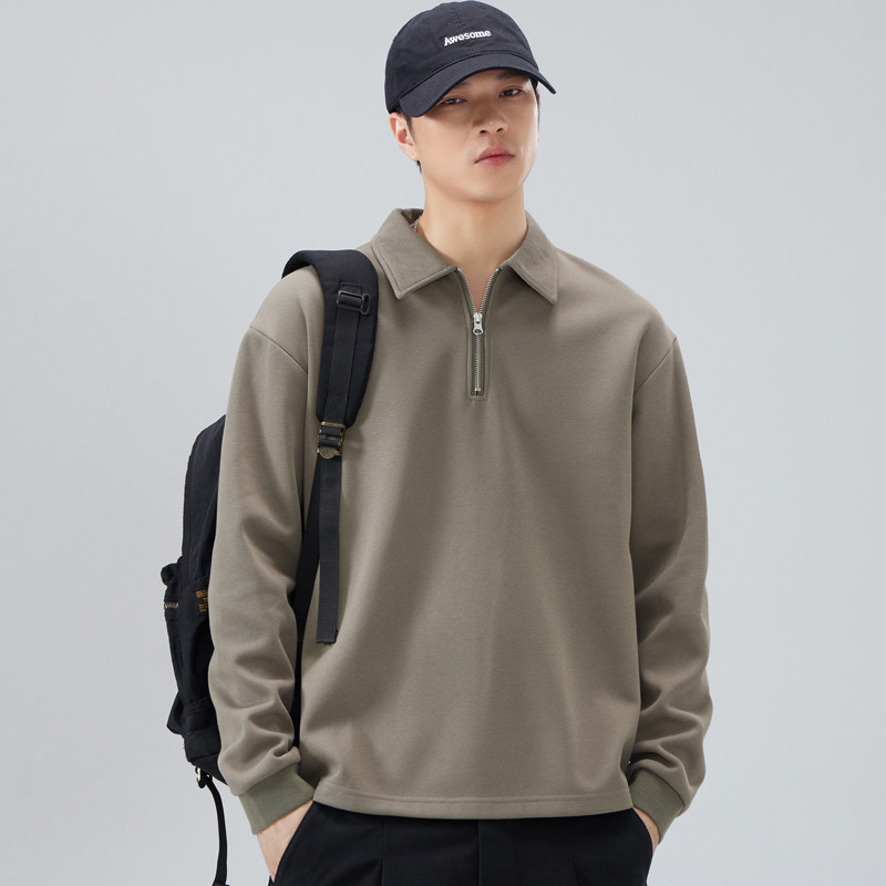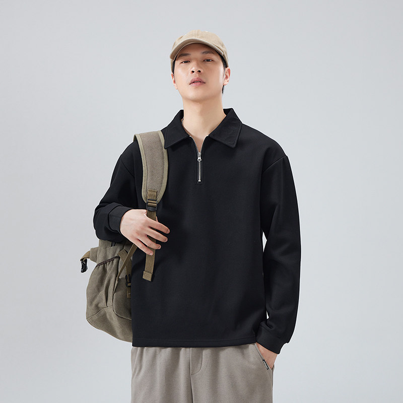 长袖 翻领上衣加绒Polo衫 半拉链带领子卫衣男士 2025新款 秋冬款 美式