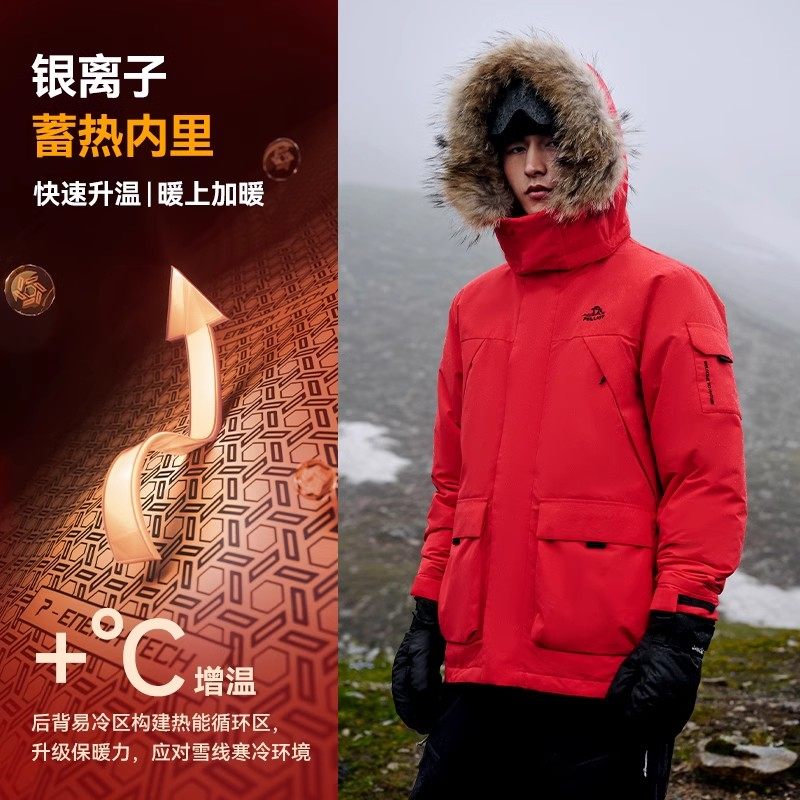 加绒男装 新款 加厚上衣保暖防风运动外套 秋冬季 特步连帽羽绒服男士