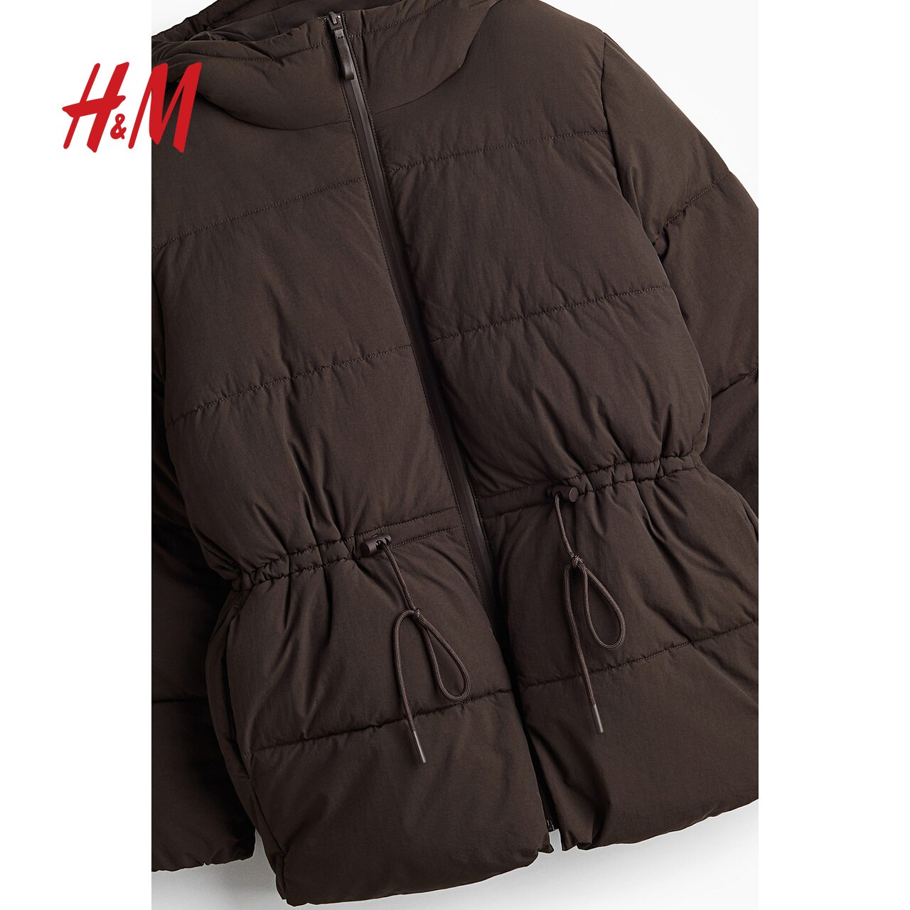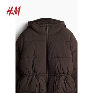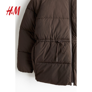 HM女装 保暖腰部抽绳棉外套1228976 棉服暖乎乎冬日ootd面包服时尚