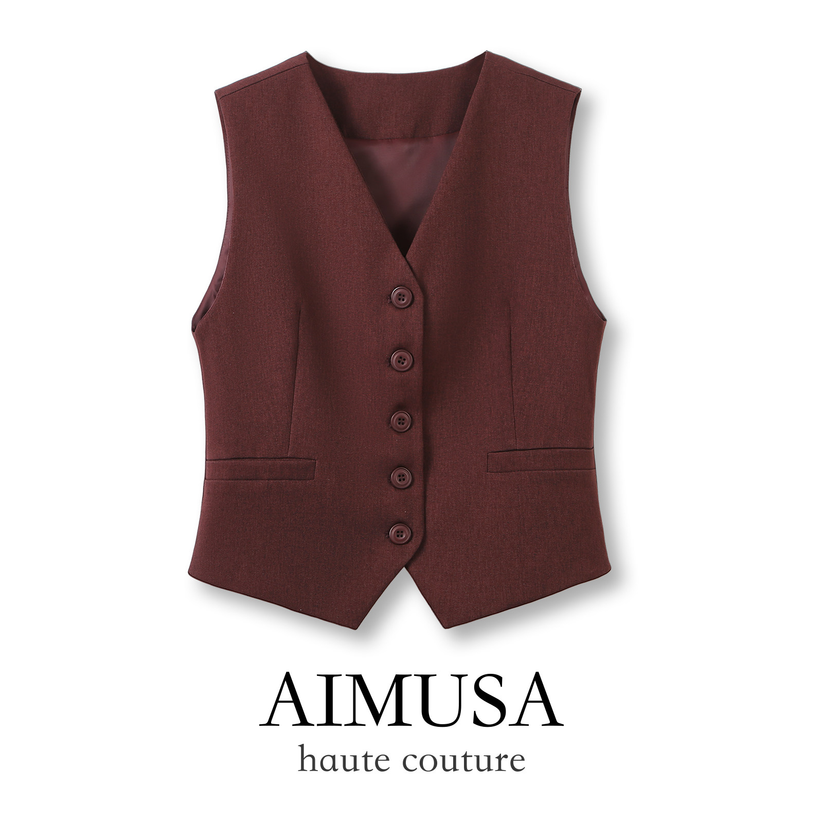 无袖 马甲背心女春季 坎肩外套叠穿 26春秋格雷系灰色西装 AIMUSA