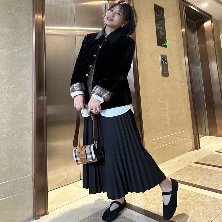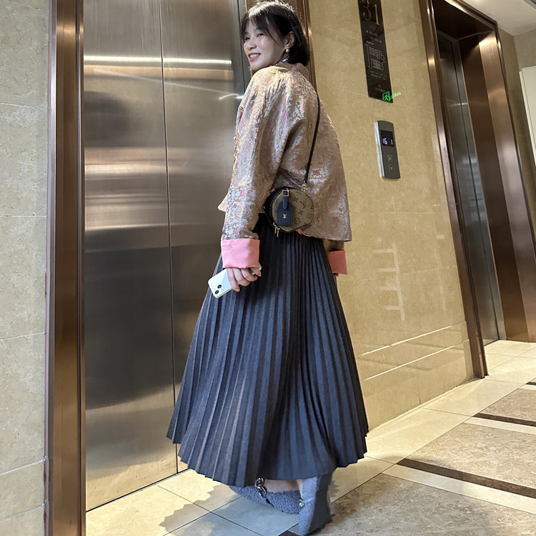 秋冬挚爱 优雅显瘦a字大摆单层毛呢百褶半身裙气质长裙 百搭W品