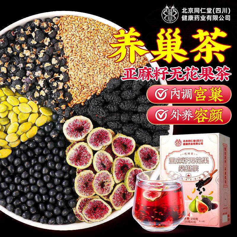 北京同仁堂亚麻籽无花豆枸杞桑葚干信黄养雌生茶包黄体酮无花果