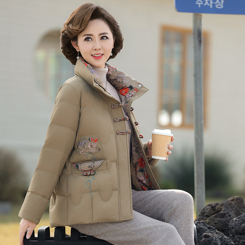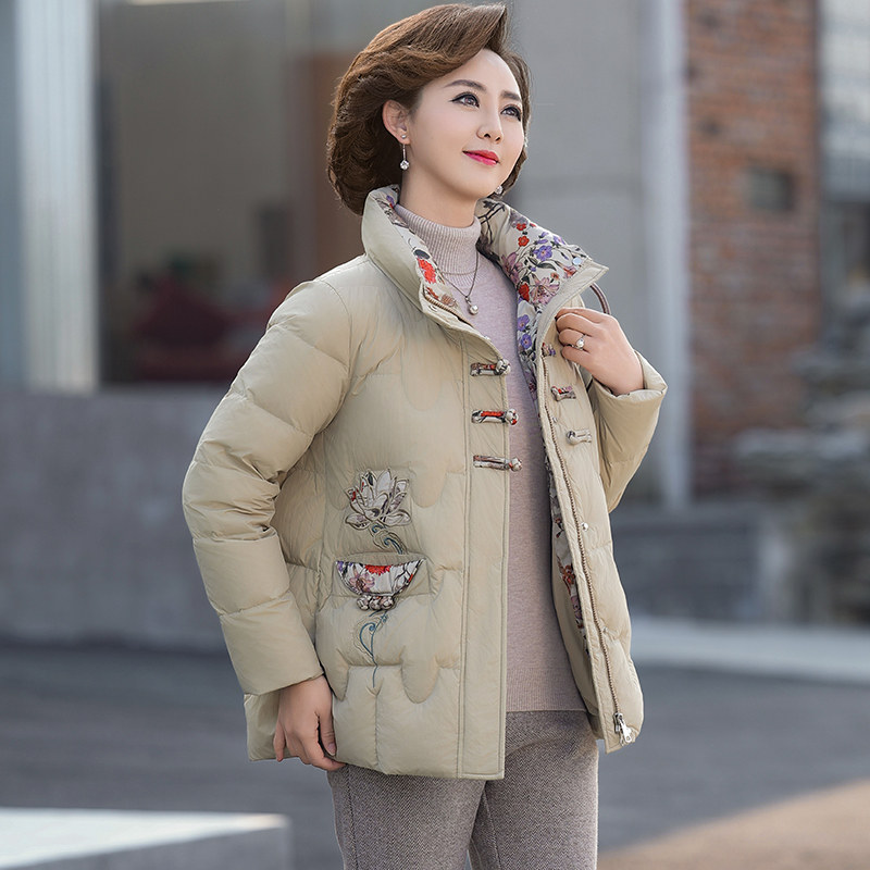 棉衣中老年人立领保暖花棉袄 羽绒服中年女洋气短款 妈妈冬装 新中式