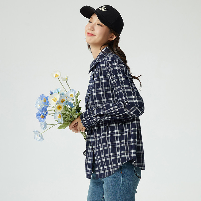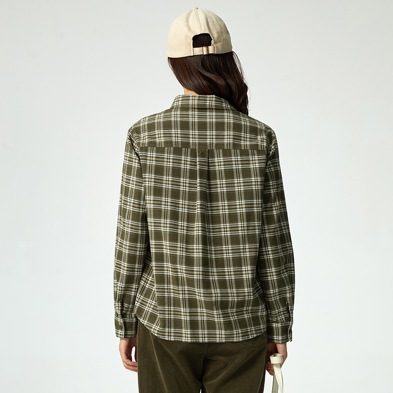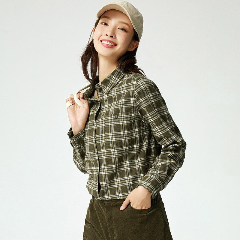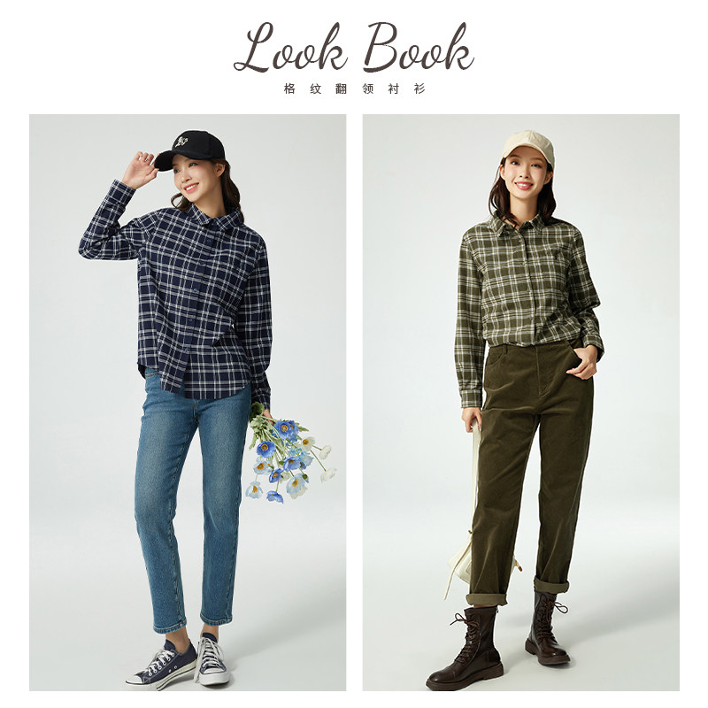 纯棉法兰绒一字袋宽松长袖 佐丹奴美式 女装 子衬衫 衬衣13345859 风格