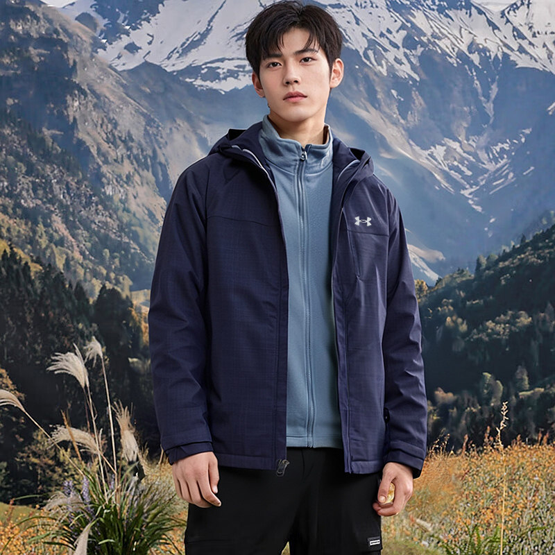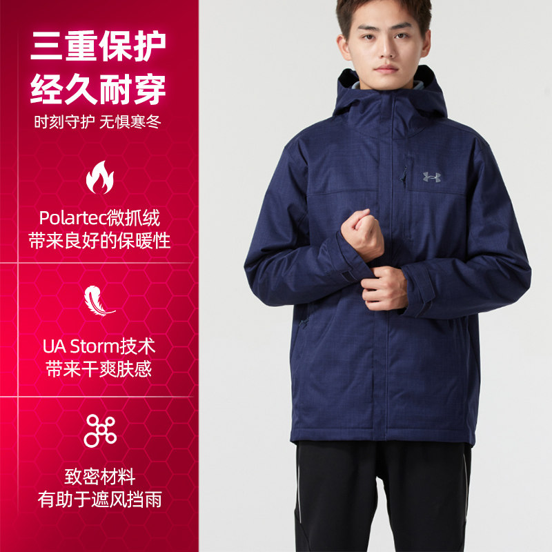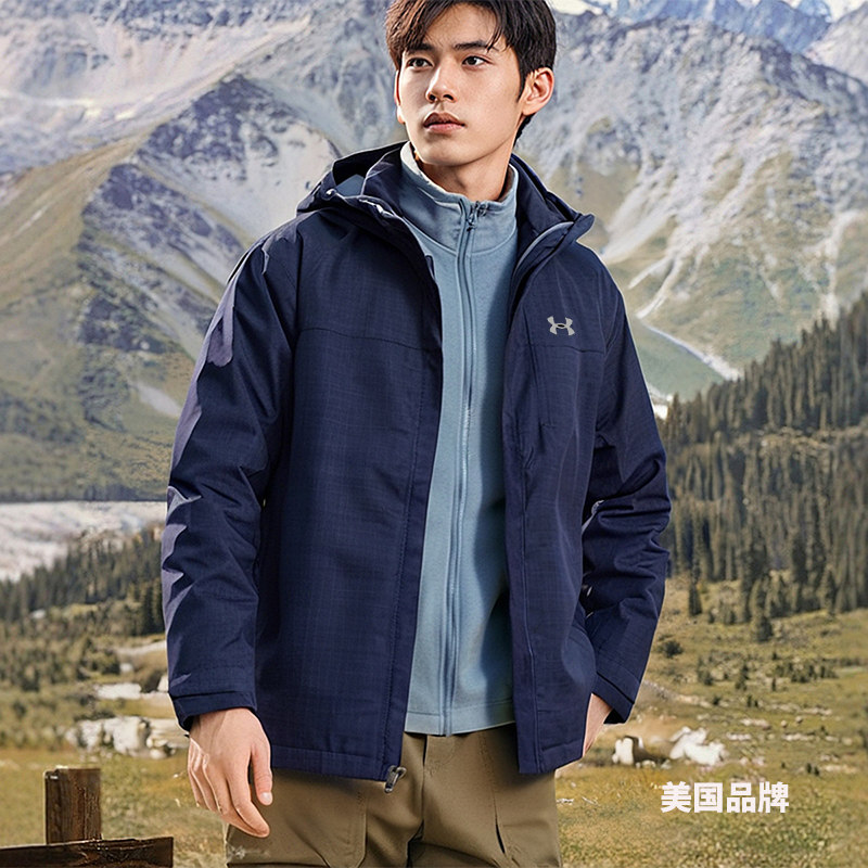 新款 安德玛三合一外套男秋季 户外防风加绒保暖连帽夹克 自营