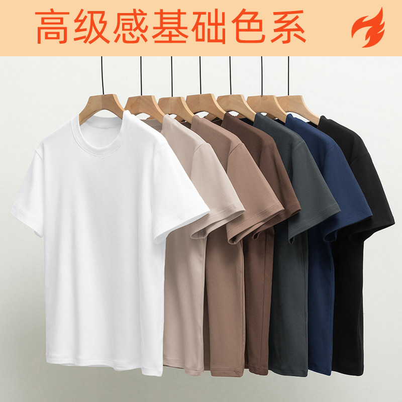 圆领加绒半袖 280g重磅双面德绒t恤男生短袖 纯色上衣服保暖打底衫