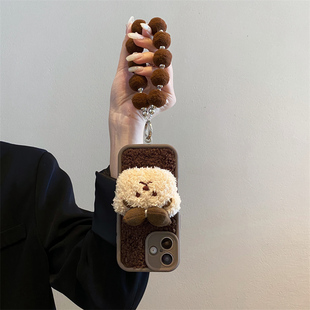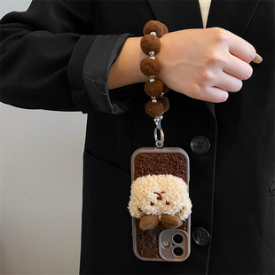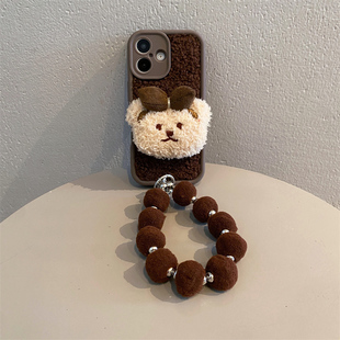 秋冬美拉德棕蝴蝶结小熊适用苹果17promax手机壳iphone16pro斜挎13趣味14毛绒卡通15promax绒布12新款 11手链