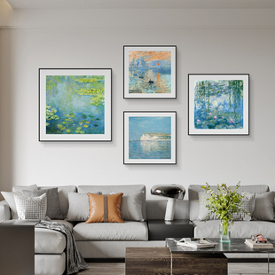 莫奈梵高油画餐厅挂画高级感客厅沙发背景墙面装 饰画世界名画壁画