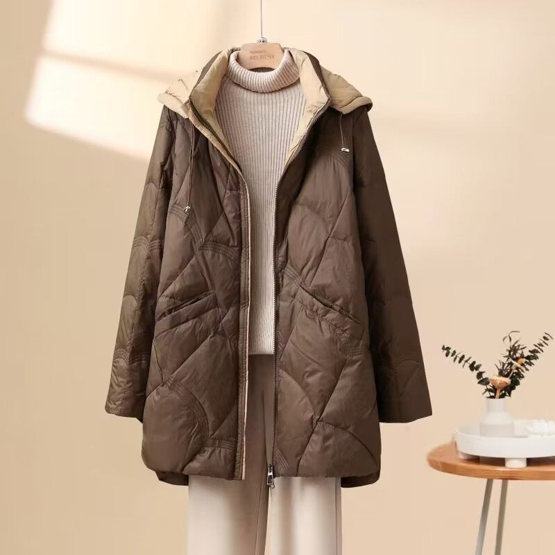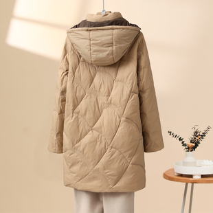 雪中飞2025秋冬新款 简约百搭青春休闲 女士菱格圆领羽绒服内恤时尚