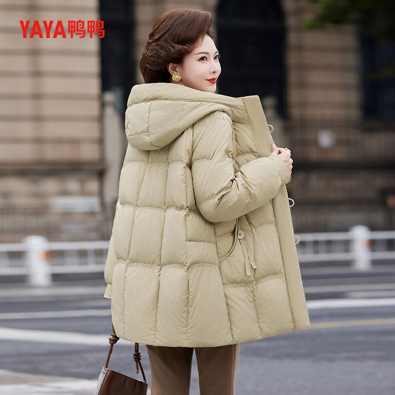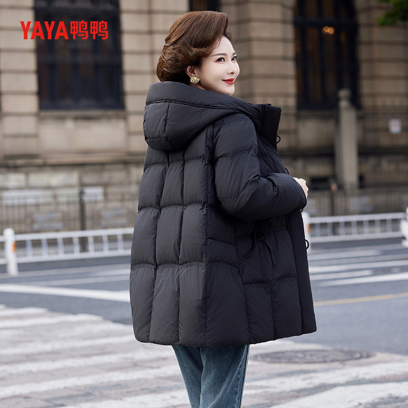 外套中老年冬装 鸭鸭妈妈中长款 连帽中年女装 时尚 羽绒服女2024新款
