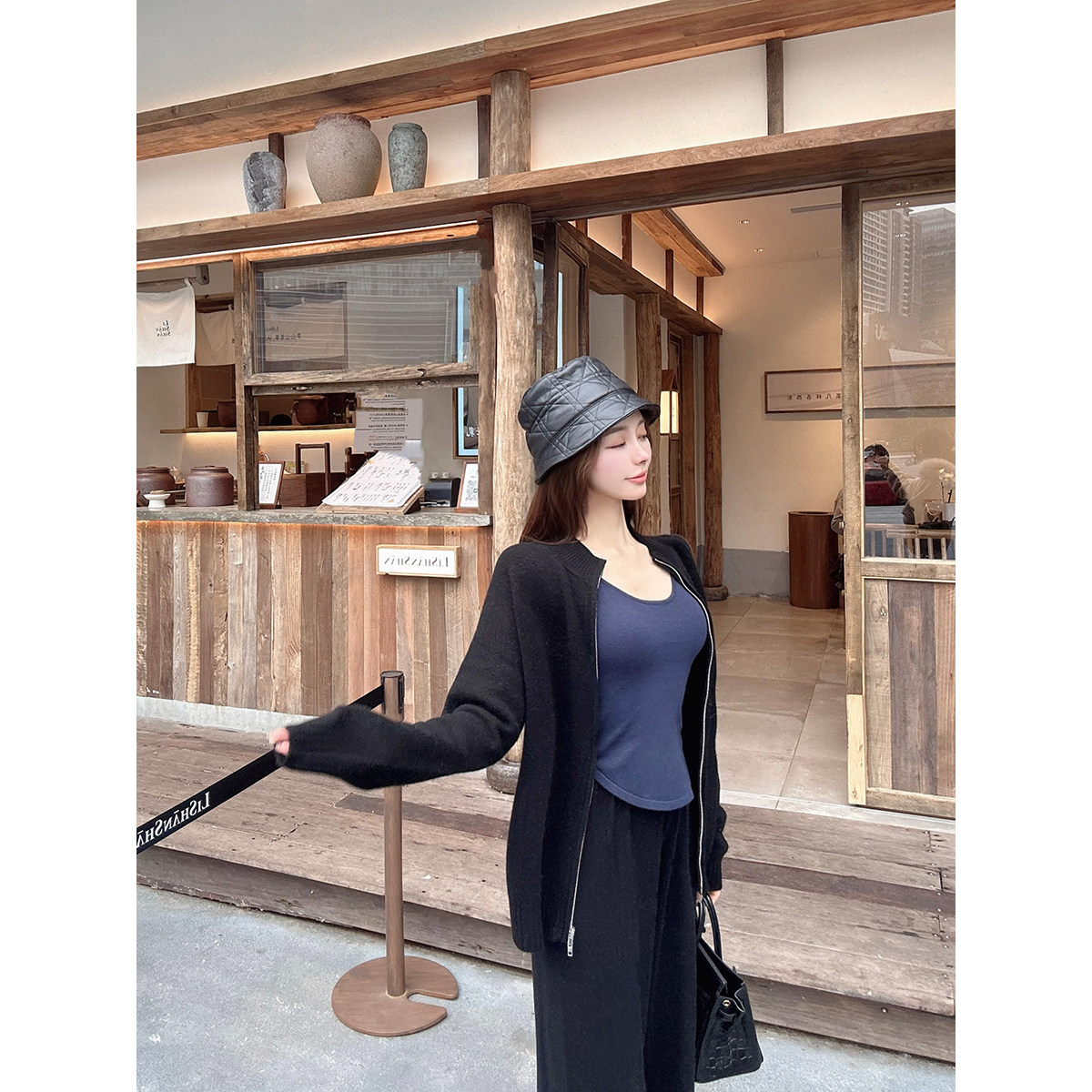 针织修身 浅灰色半高领羊毛打底衫 新款 内搭毛衣2025冬季 黑上衣 女装
