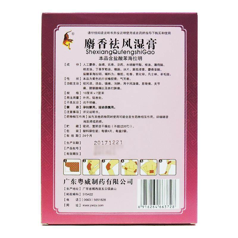 8片 7cm 祛风湿 活血 筋骨痛 粤威 风湿痛 麝香祛风湿膏10cm