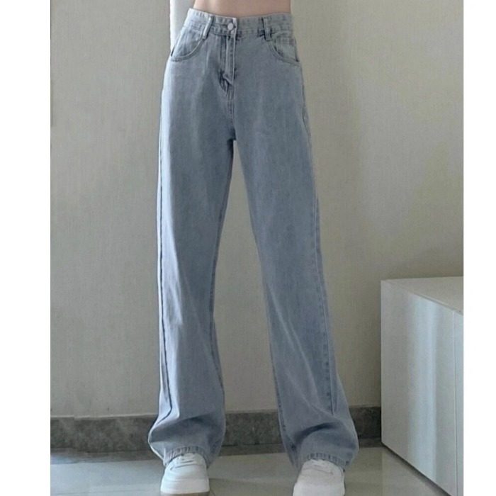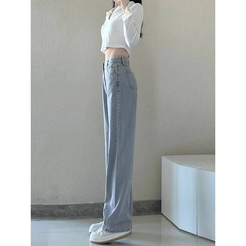 夏 xs码 145小个子高腰牛仔长裤 女150cm显高百搭宽松直筒阔腿拖地裤