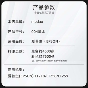 适用EPSON 墨水L1258喷墨打印机墨水L1259黑色墨水004 L1218原装