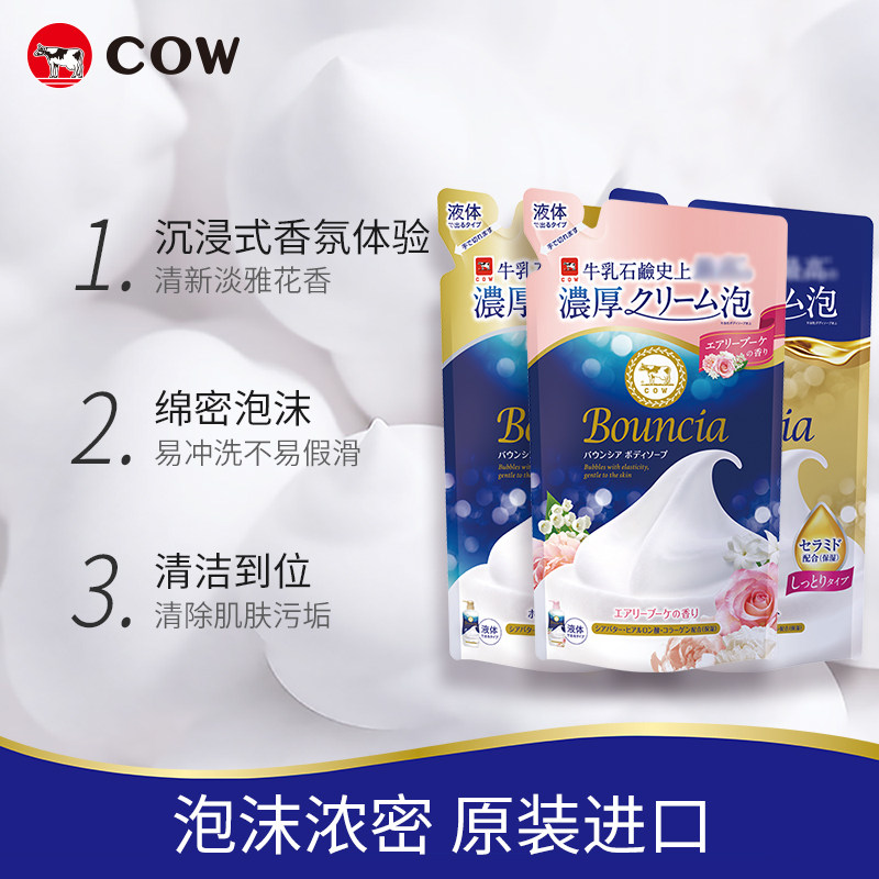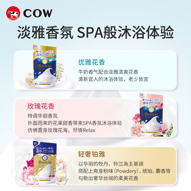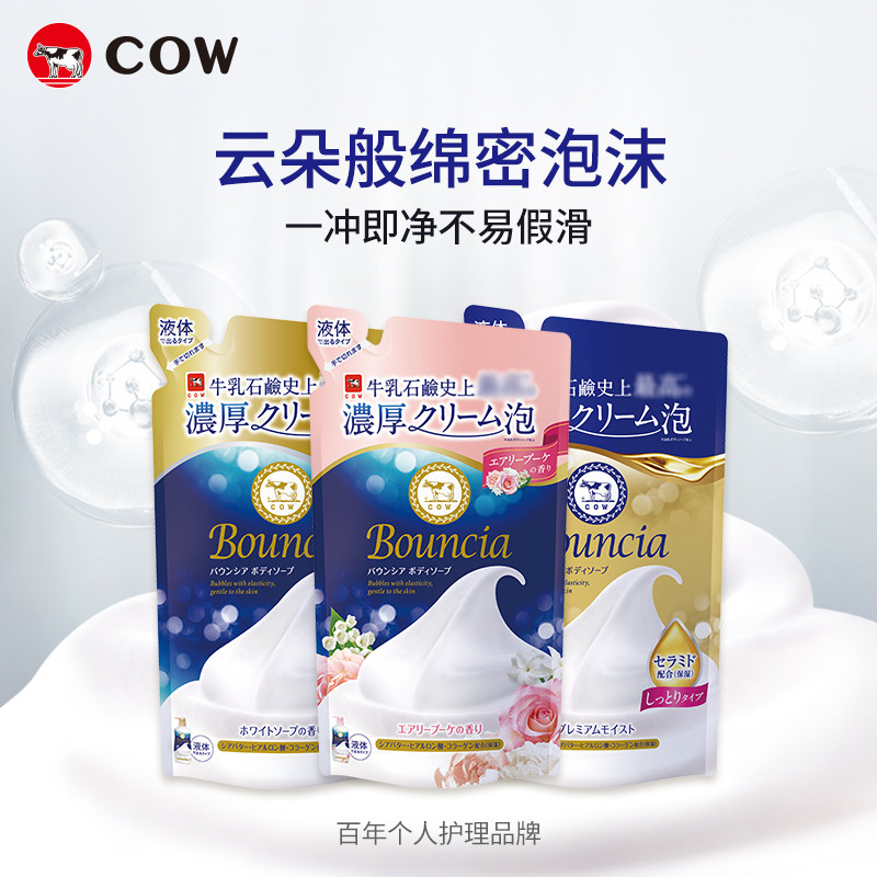 cow牛乳石硷碱bouncia美肤沐浴露乳花香夏补充包替换装 家庭不假滑