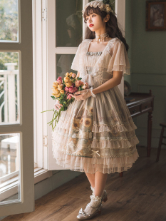 原创正版 向日葵物语吊带荷叶边Lolita连衣裙夏罩裙日常洛丽塔套装