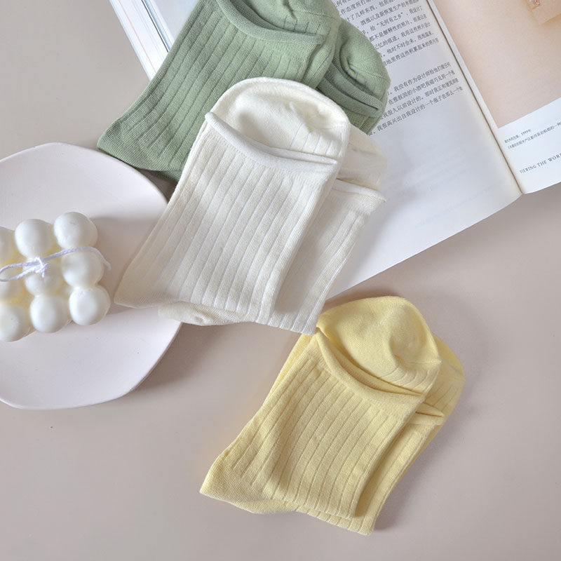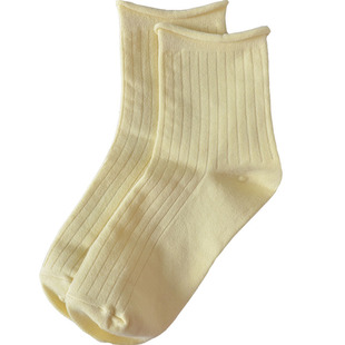 奶油糖果色袜子女中筒袜棉袜彩色短袜薄款 ins潮日系卷边韩国纯色