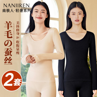 内穿冬季 南极人保暖内衣女士秋衣秋裤 发热紧身打底棉毛衫 薄款 套装