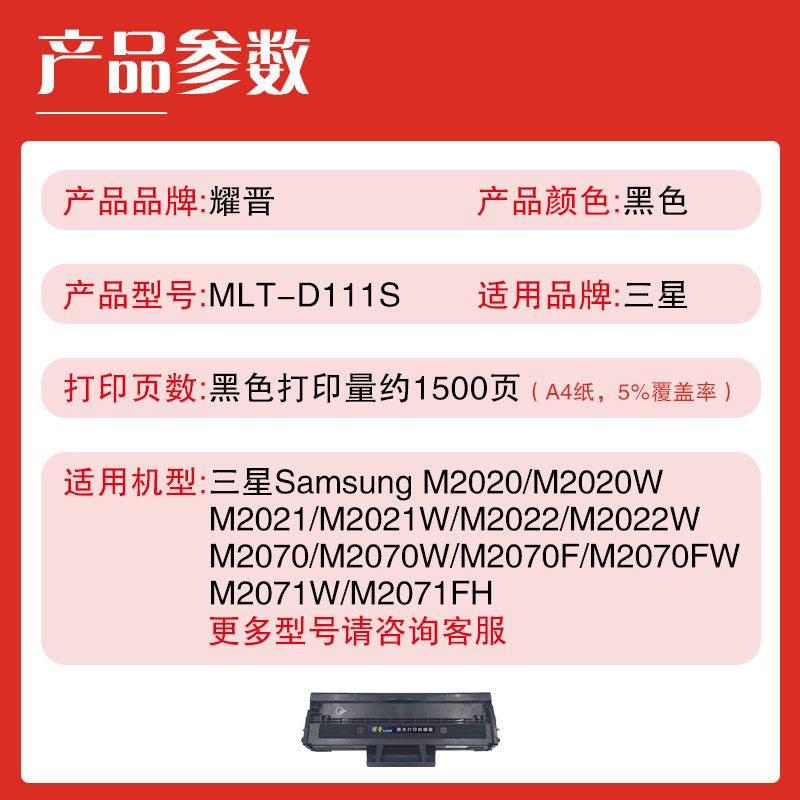 M2022打印机碳粉粉盒M2070F 适用三星MLT M2020W M2020 M2021W 2071FH墨盒晒鼓 D111S硒鼓M2070