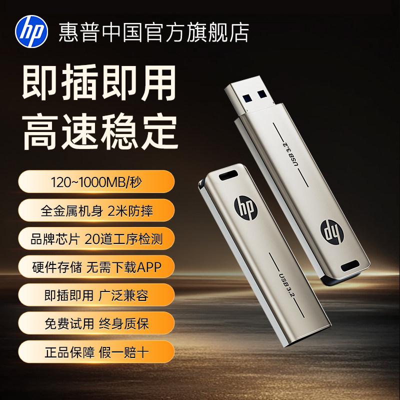 惠普正品 256g大容量u盘usb3.2金属高速办公电脑手机官方旗舰优盘