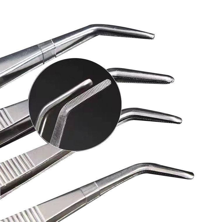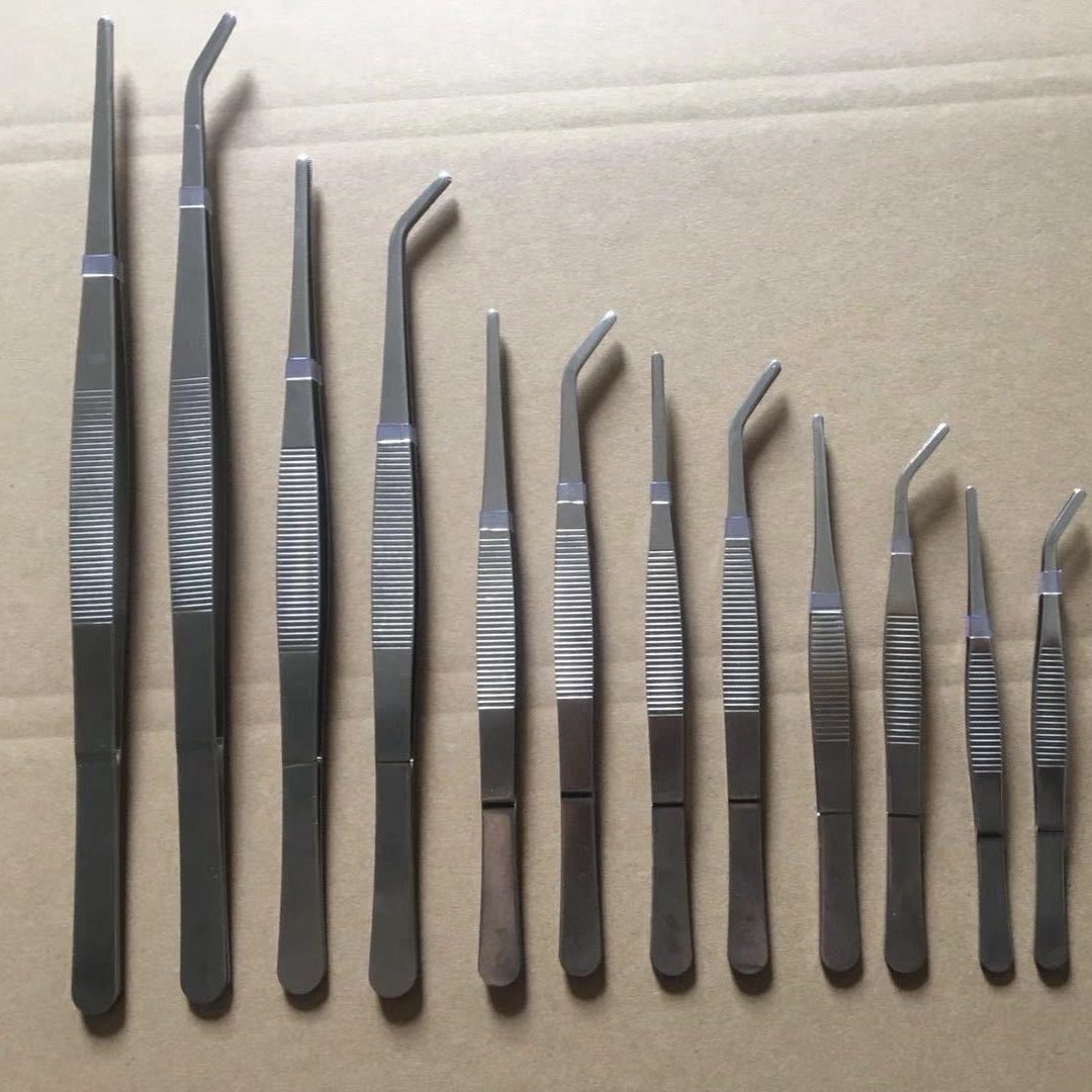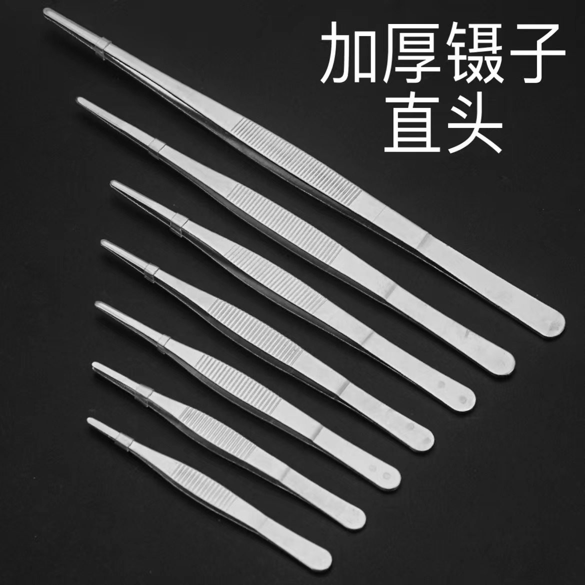 30cm 实验室镊子不锈钢敷料镊子扁圆平头带齿镊子镊子平镊子敷料夹12.5