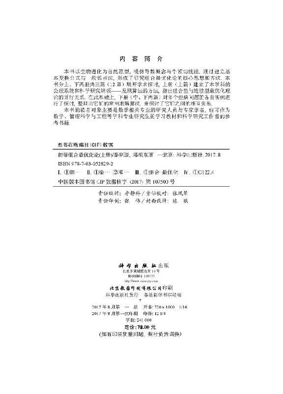 按需印刷 邓旭东科学出版 初组合最优化论 秦裕瑗 社 上册