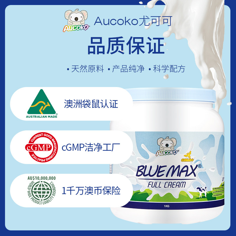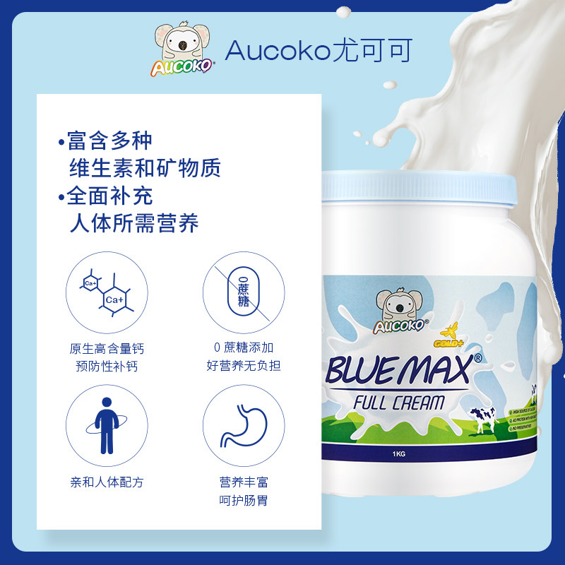 1KG Aucoko尤可可 全脂牛奶粉 澳洲进口 罐 蓝胖子
