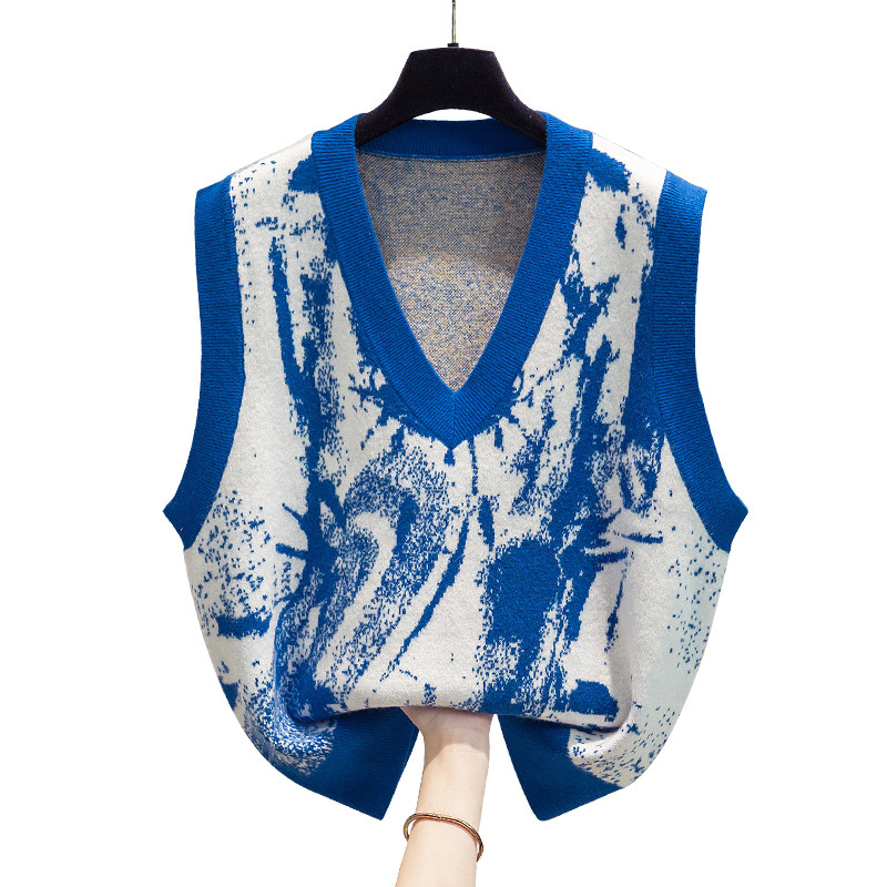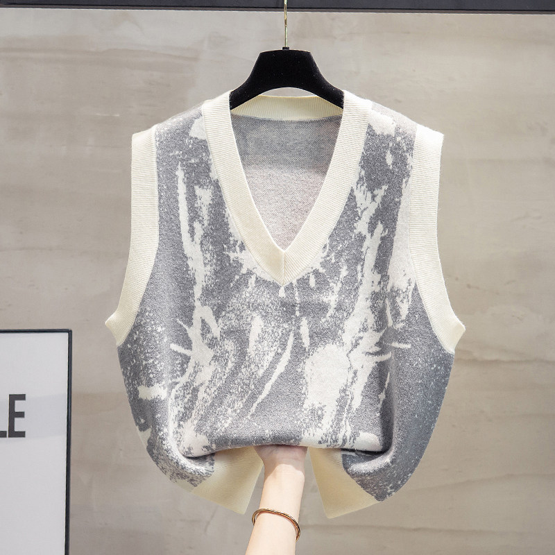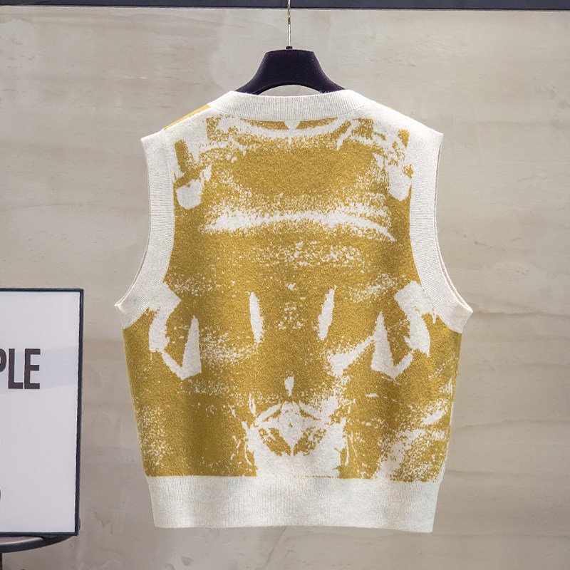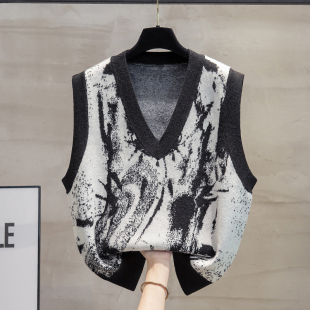 细针涂鸦v领针织马甲背心女2025秋冬新款 宽松马夹外穿毛衣坎肩潮