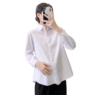 职业孕妇装 上衣春夏全棉长袖 大码 A版 打底工作服衬衣 纯白衬衫 春装