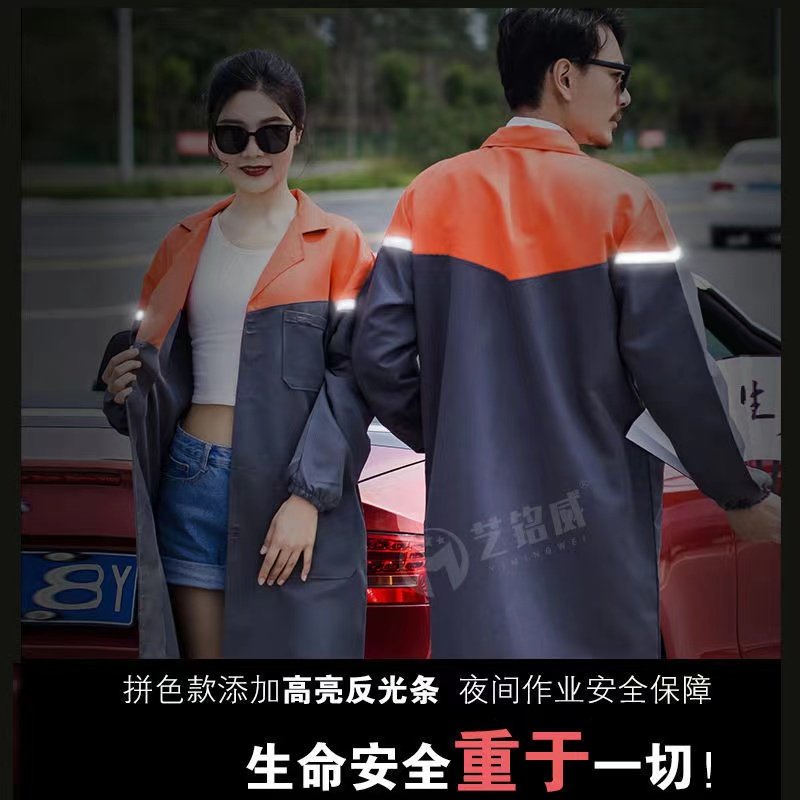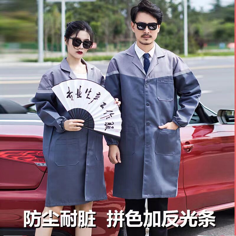 劳保工作服拼肩反光条大褂蓝大褂防尘罩衣物流车间饲料养殖厂工服