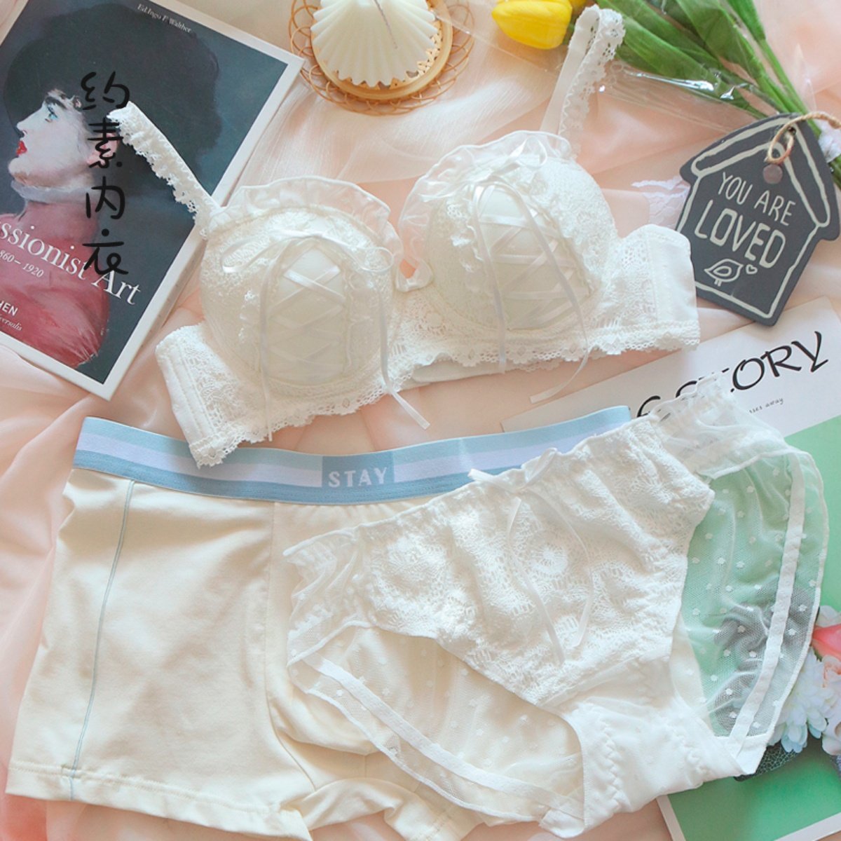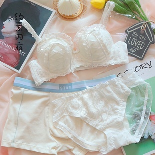 好奇蜜斯蕾丝小胸聚拢内衣女纯欲文胸罩套装 大胸显小防下垂薄性感