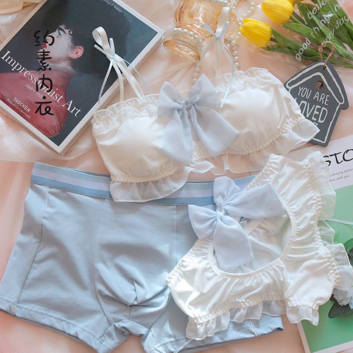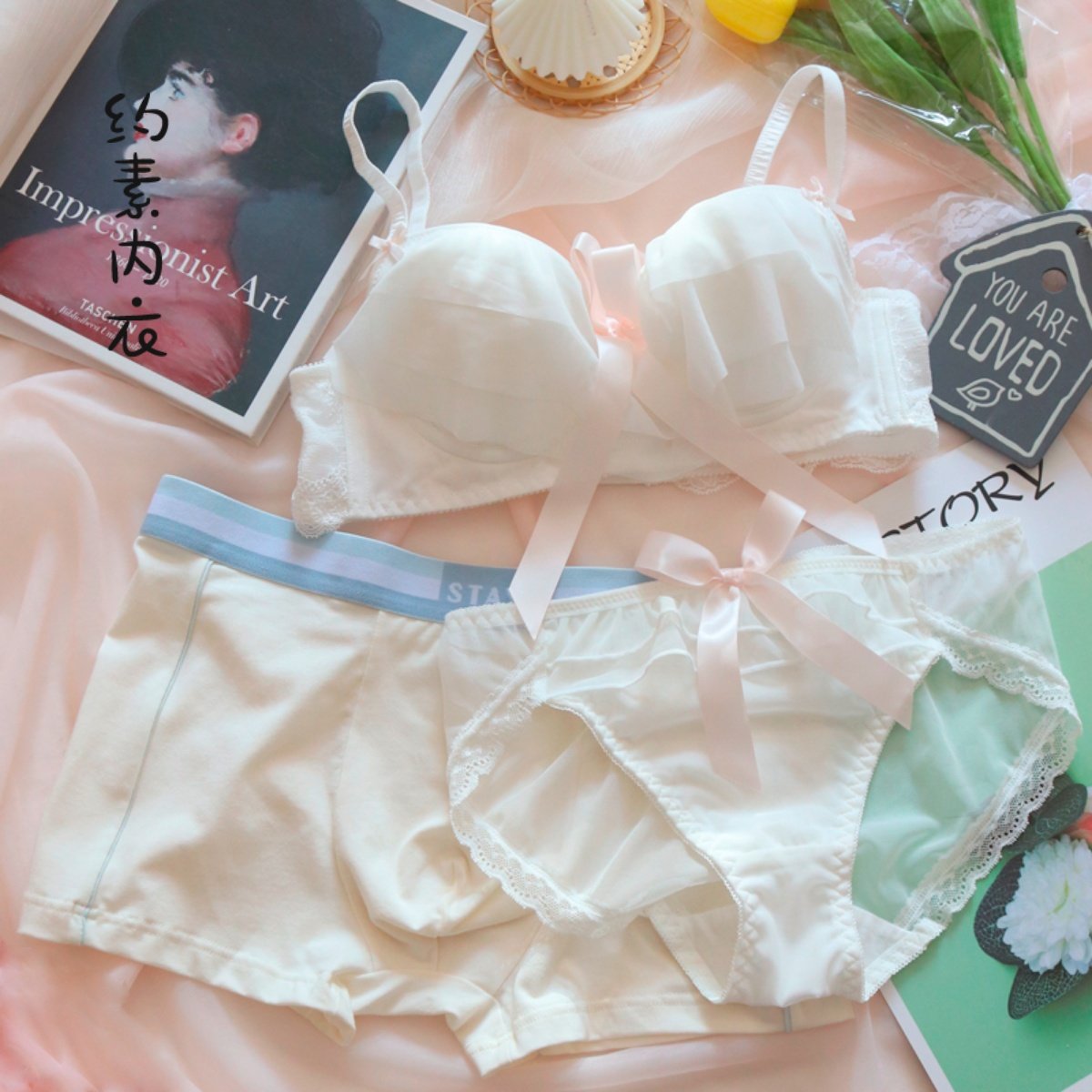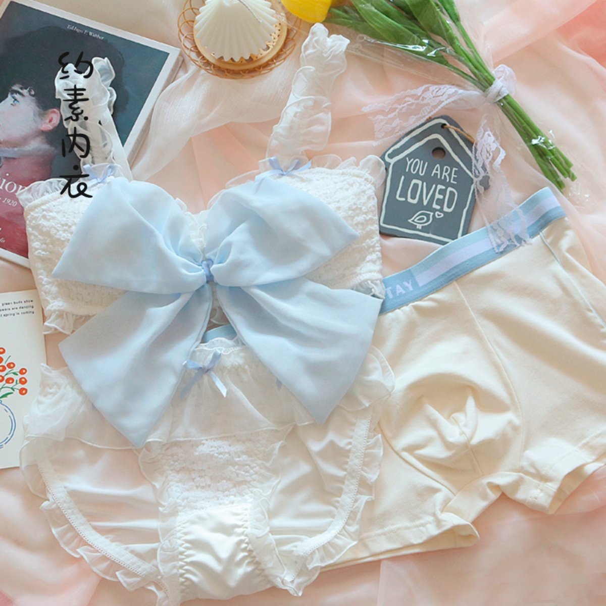 文胸套装 六只兔子小怪瘦法式 三角杯内衣女性感蕾丝大胸显小薄款