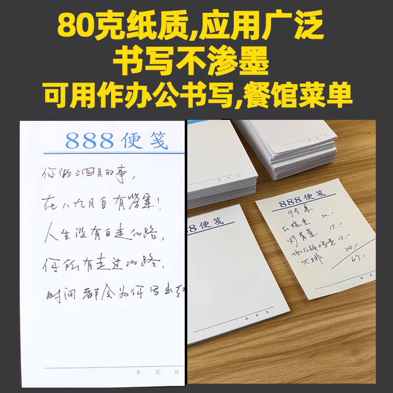 青联888便签纸便签本贴纸草稿纸打草稿本子小便利贴空白可撕记事纸A4便笺点菜单分区小学生初中高中专用A5