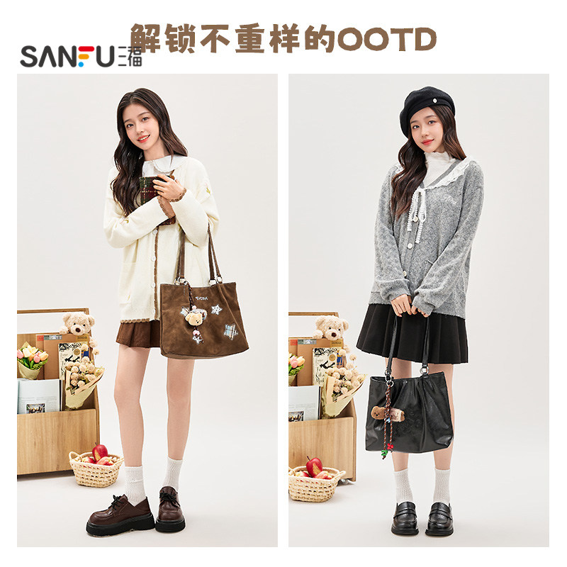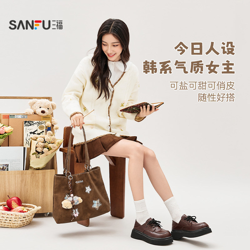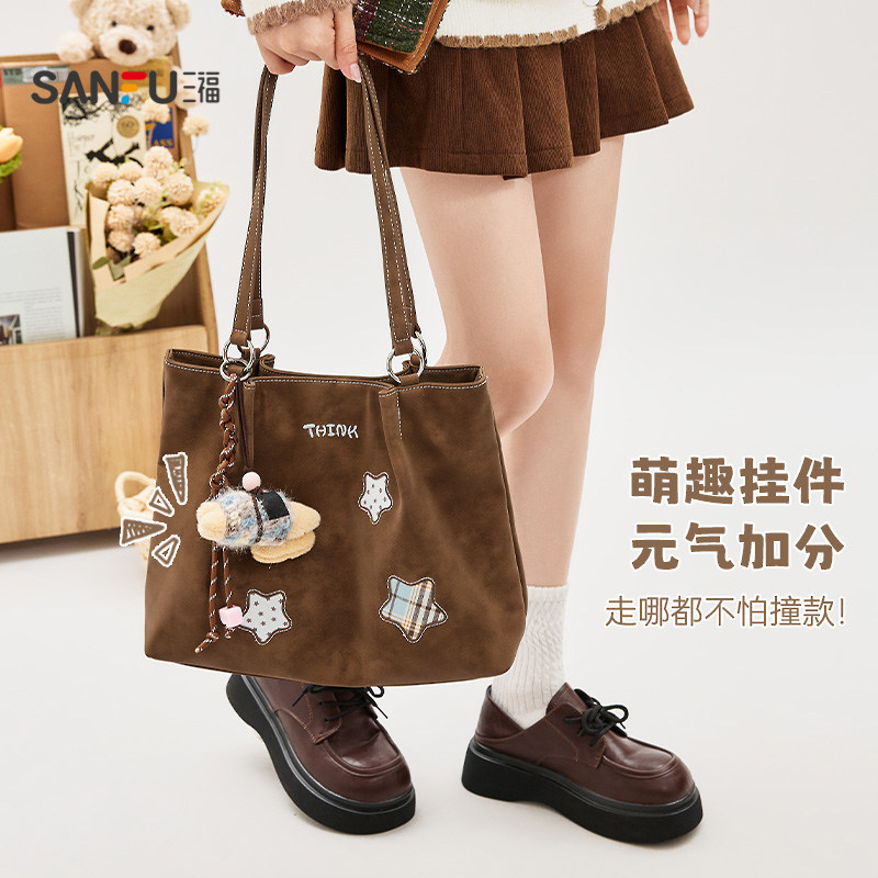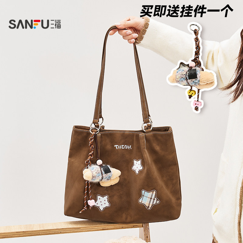 三福托特包女新款 牛仔包通勤包包大容量托特包百搭单肩挎包458518