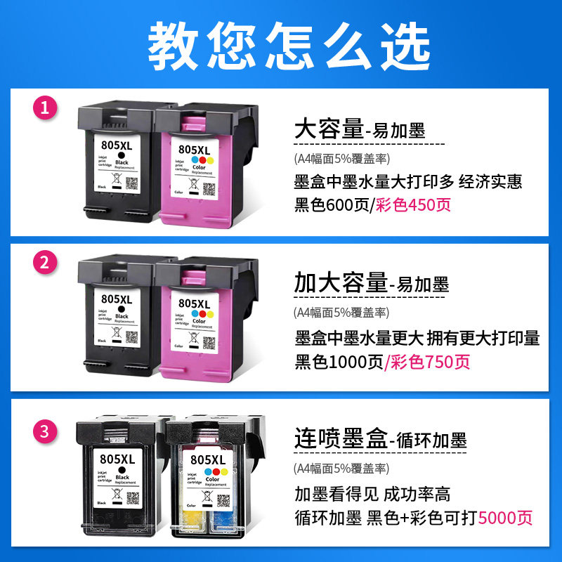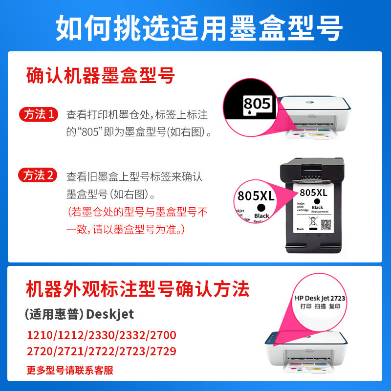 2723 2722 2729 1212黑2330 1210打印机连喷DeskJet 优替适用惠普805XL墨盒可加墨HP2700 彩2332dj2721 2720