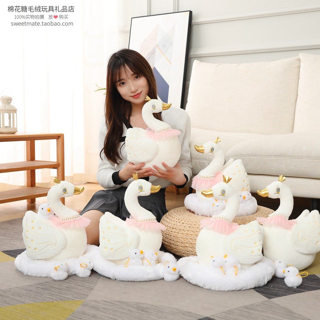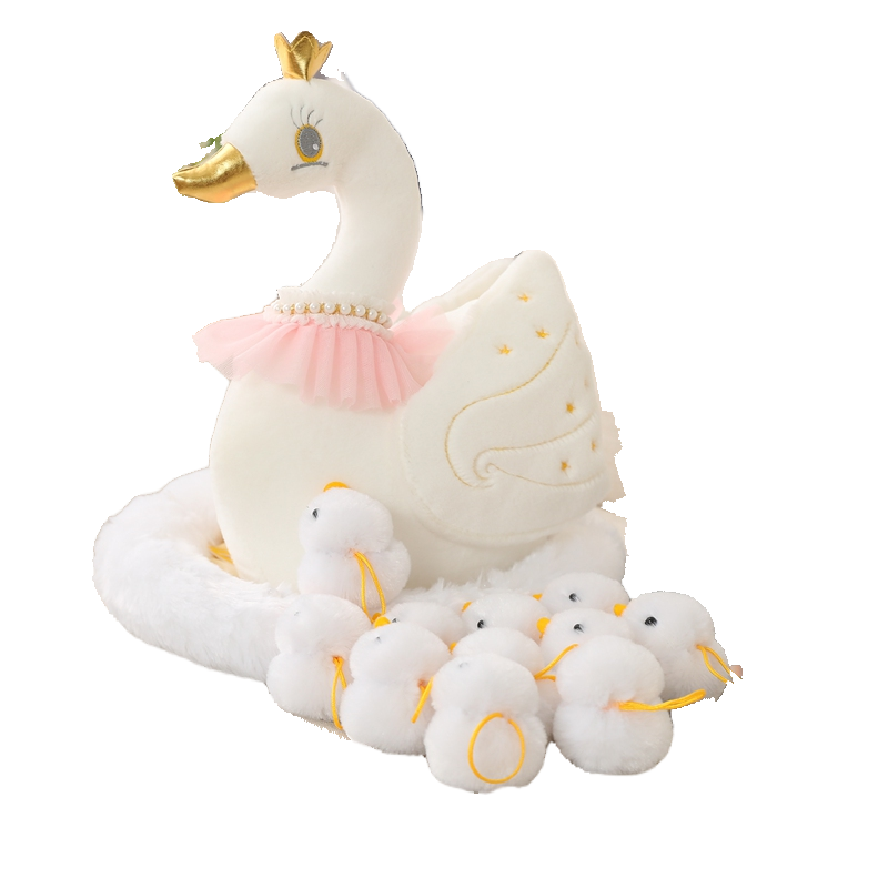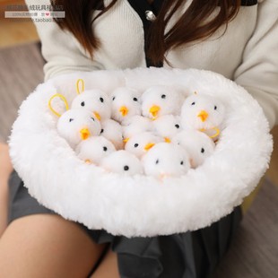 有趣一窝可爱白天鹅小黄鸡公仔儿童玩偶母鸡白鹅毛绒玩具实用礼物